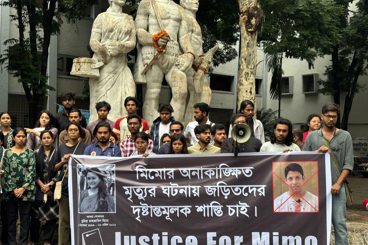 মানববন্ধনে বিভাগের শিক্ষার্থী আনিয়া আক্তার বলেন, দীর্ঘদিন ধরে বিভাগে শিক্ষকদের মাধ্যমে শিক্ষার্থীদের ওপর মানসিক ও ব্যক্তিগত নিপীড়নের অভিযোগ ছিল, মিমোর মৃত্যু তারই মর্মান্তিক পরিণতি। তিনি এ ঘটনায় সুষ্ঠু ও নিরপেক্ষ বিচার নিশ্চিত করার দাবি জানান।